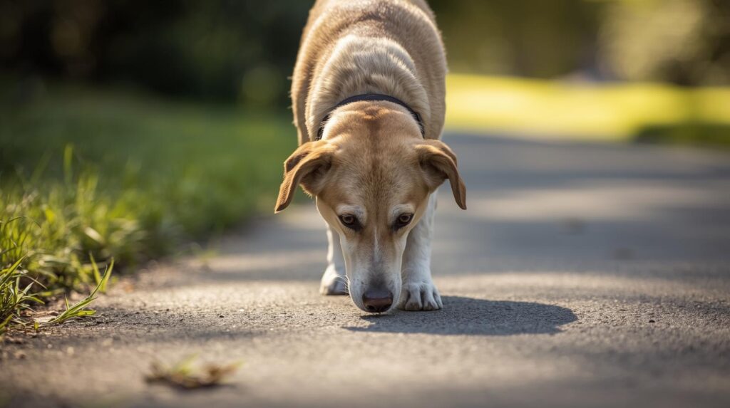 匂いを嗅ぐことは、シニア犬にとって大切な情報収集の時間です。